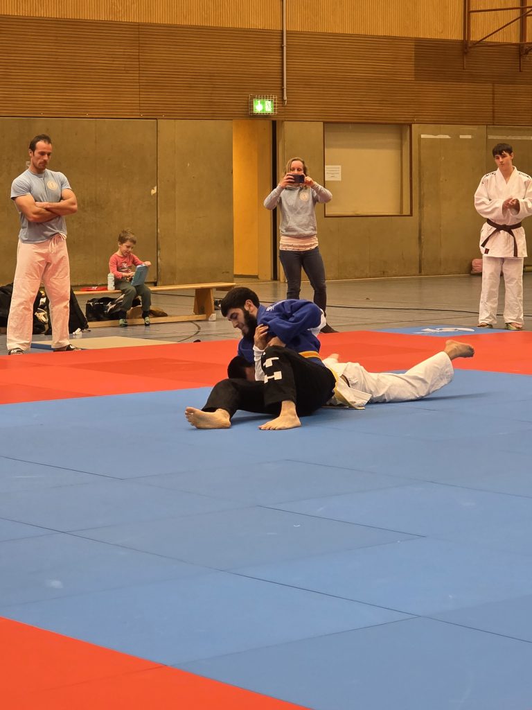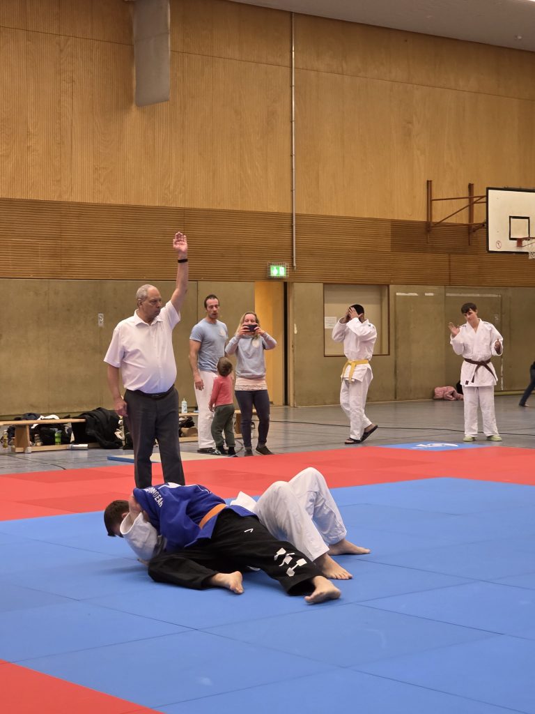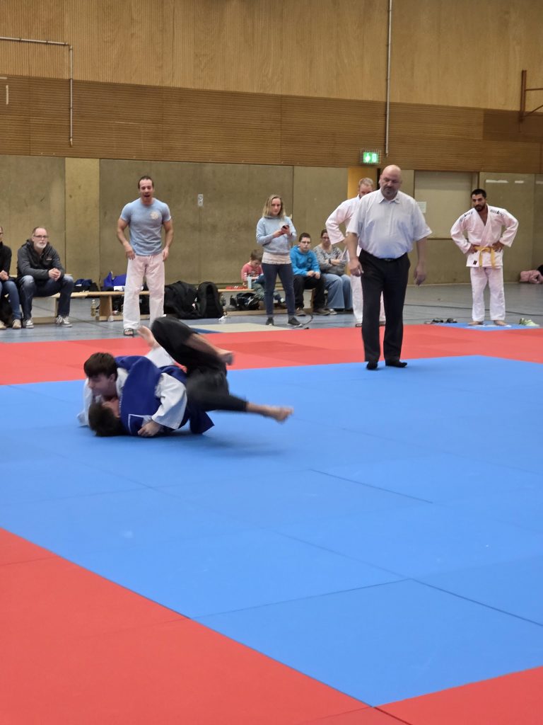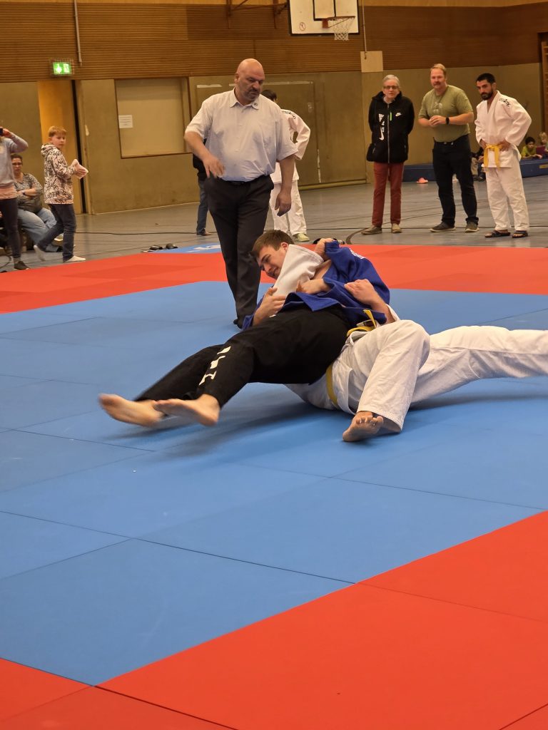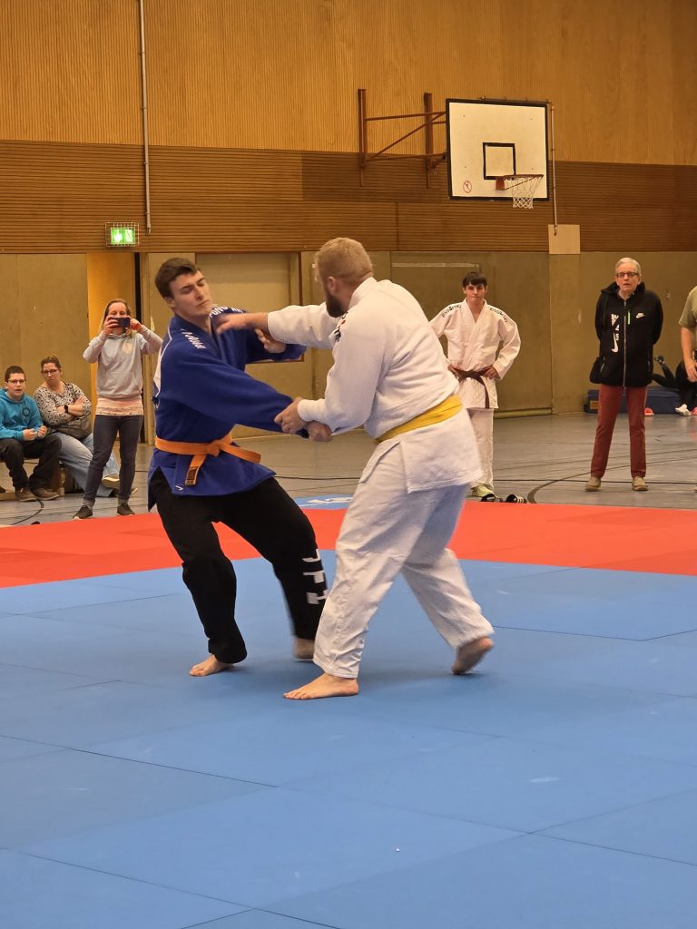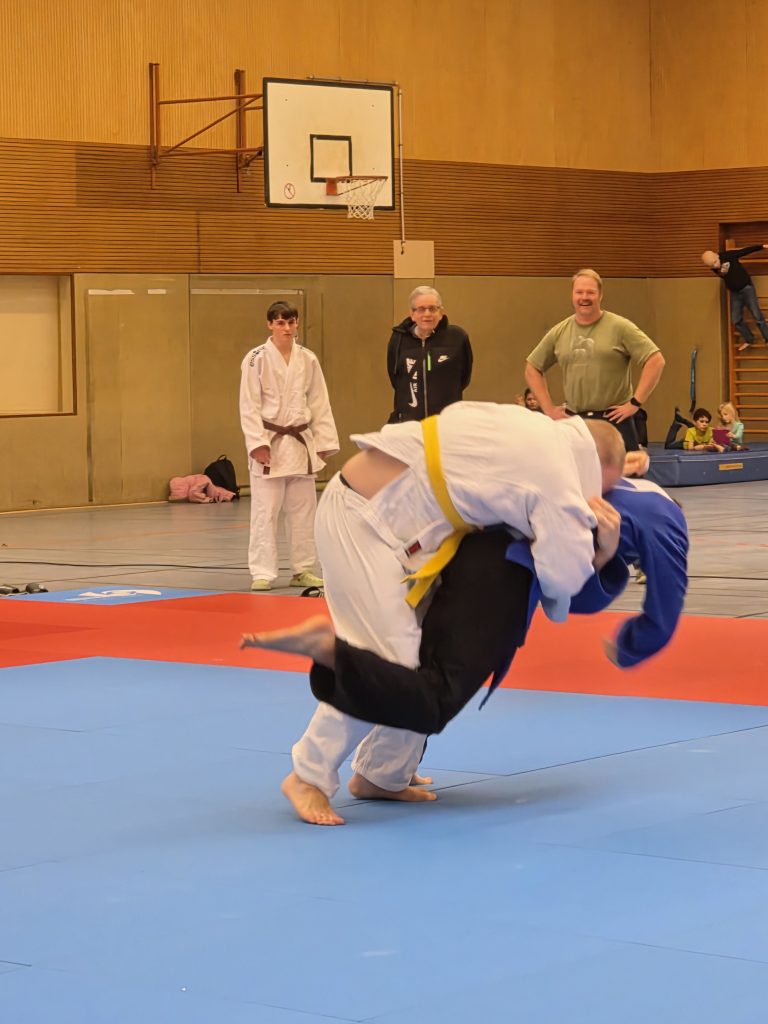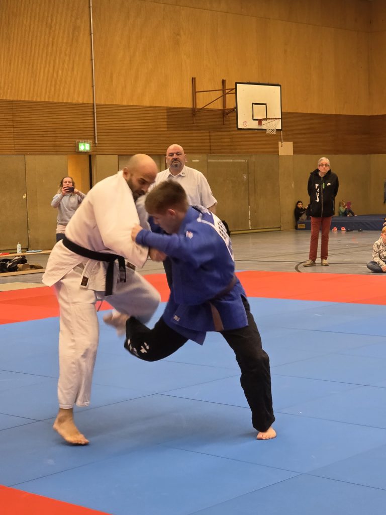 Am letzten Kampftag empfingen die Holtener dann zu Hause in einem Heimkampf das von Holtens Bundesliga-Kämpfer Maikel Grieß erst 2024 gegründete Judoteam Voerde. Das erste Mal vor Heimkampf-Kulisse war es für unsere jungen Judoka gar nicht so einfach, ebenso unbefangen aufzutreten wie in den vorangegangenen Partien. 2:3 aus Holtener Sicht hieß es zur Pause, doch die Jungs ließen sich nicht unterkriegen.